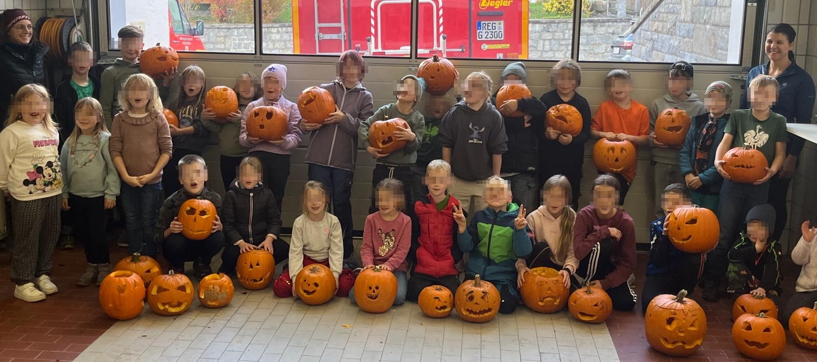 Schlatzendorf. Die Kinderfeuerwehr Schlatzendorf hat am Freitagnachmittag (24.10.2025) zum Kürbisschnitzen ins Feuerwehrhaus eingeladen. Viele Kinder sowie einige Mütter und Väter waren dem Aufruf gefolgt. Unter der Leitung von Erna Vogl, der Leiterin der Kinderfeuerwehr, und ihrer Stellvertreterin Carolin Wittmann verbrachten die über 30 Kinder einen kreativen und fröhlichen Nachmittag. Mit viel Eifer schnitzten sie gruselige und lustige Gesichter sowie Fratzen in ausgehöhlte Kürbisse und konnten es kaum erwarten, ihre Kunstwerke mit nach Hause zu nehmen und im Dunkeln leuchten zu sehen. Zum Abschluss des Nachmittags konnten sich die Kinder mit Kuchen und Snacks stärken und sich beim Toben im Feuerwehrhaus austoben.
