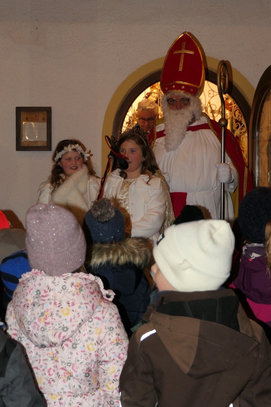 Schlatzendorf. (ham) Bei leichtem Nieselregenstimmte die Bläsergruppe der Stadtkapelle Viechtach am Freitagabend (15.12.2023) bei der Schlatzendorfer Kapelle im Ortskern bekannte Weihnachtsweisen an. Aufgeregt tänzelten die Kinder um die sieben Buden, in denen die Vereine der Dorfgemeinschaft ihre Waren anboten, bis dann endlich der Nikolaus kam.